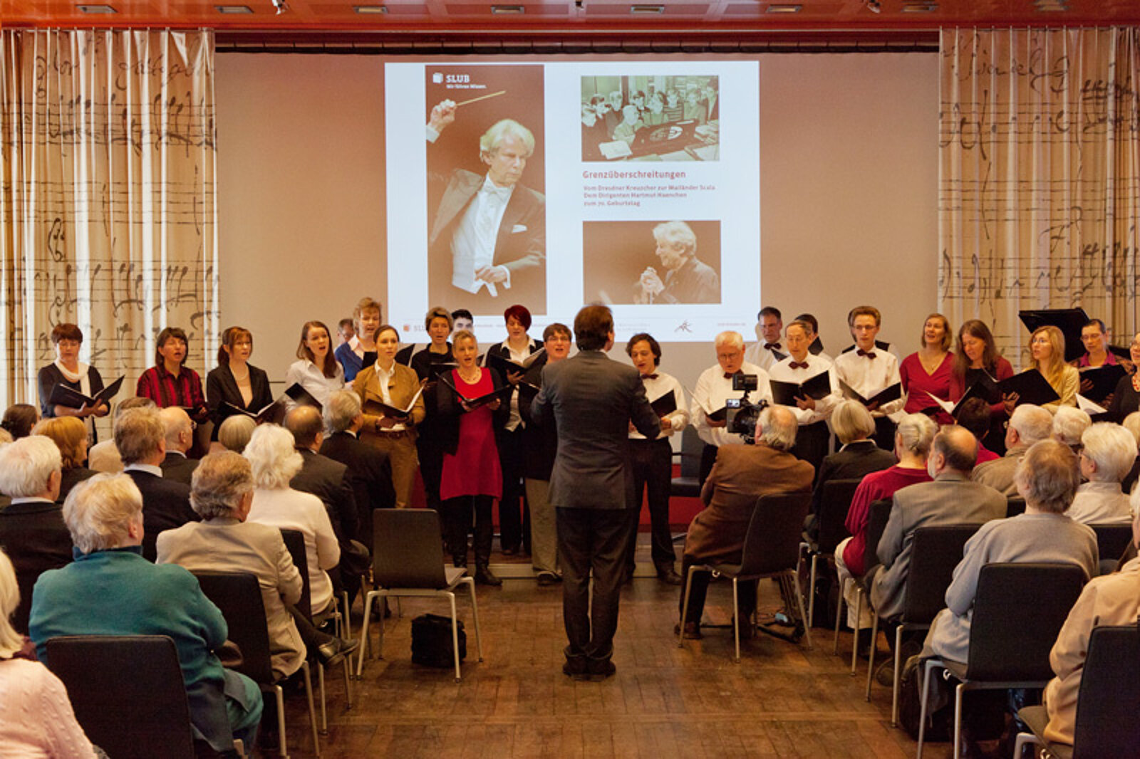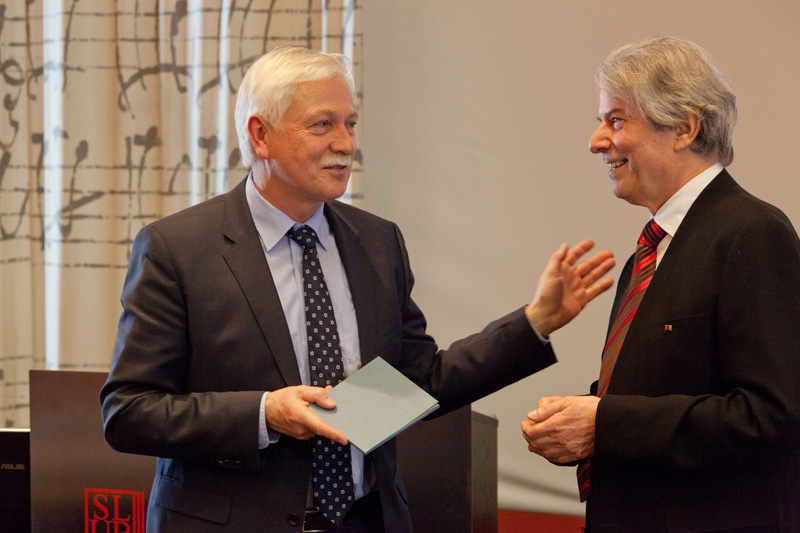 Enorm anrührend sei das für ihn, sagte SLUB-Direktor Thomas Bürger zu Beginn der festlichen Matinee, die die SLUB für den Dirigenten Hartmut Haenchen ausgerichtet hatte - denn es geschieht nicht jeden Tag, dass ein Bibliothekar eine thematische Sammlung entgegennehmen darf, in der die Erfahrung von Jahrzehnten steckt. Hartmut Haenchen, der dieser Tage siebzig Jahre alt wird, hat der Sächsischen Landesbibliothek – Staats- und Universitätsbibliothek seinen Vorlass vermacht. Das Paket, das dem Haus nun übergeben wird, umfasst dreitausend eingerichtete Partituren, umfangreiches Orchestermaterial und auch einige bibliophile Kostbarkeiten, unter anderem die seltene Notenausgabe eines Geigenduos, das der junge Richard Wagner aus einer Donizetti-Oper exzerpierte, oder eine kostbare Handschrift des Komponisten Richard Strauss.