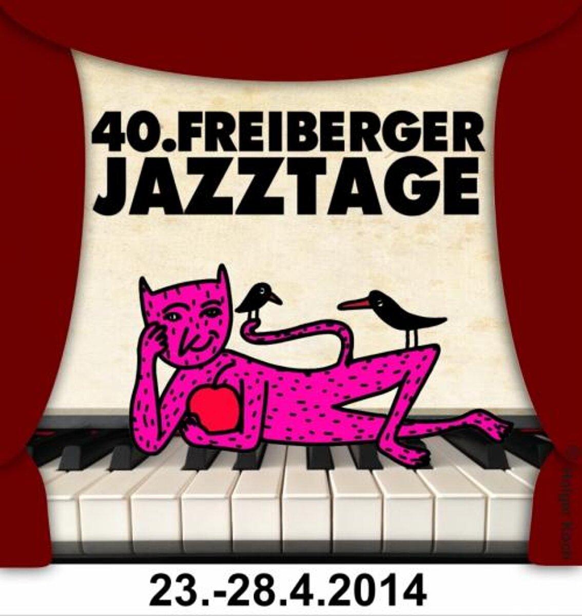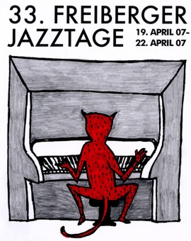 Klar, dass sich im Laufe der Jahre – 1997 hat mancher die Begriffe Internet oder E-Mail gerade so erstmals gehört – manches beim Erschaffen der Teufelchen verändert hat. »Die ersten Plakate habe ich im Siebdruckverfahren angefertigt«, so Holger Koch. »Da habe ich alles 1:1 auf Folien gezeichnet. Die Druckqualität war ein Stück besser, als heute, wo es im Digitaldruck erstellt wird.« Man könne aber heute unterschiedliche Formate von einer Vorlage drucken, »was ja auch für die Verbreitung wichtig ist«, so Koch. »Heute skizziere ich nur die Idee und versuche den Entwurf dann digital zu erstellen.« Der Künstler, der längst für seine witzigen, skurrilen, teils auch grotesken Druckgrafiken, Gemälde und Zeichnungen bekannt geworden ist, bezeichnet sich selber nicht unbedingt als Jazzfan. »Ich höre gern Musik, auch bei der Arbeit. Aber eben sehr unterschiedliche«, sagt er von sich. Das könne auch Jazz sein. Und bezogen auf seine Arbeit für die Freiberger Jazztage: »Mir geht es in erster Linie darum, eine einprägsame Bildidee zu finden, die auch eine Fortsetzung der vorangegangen Jahrgänge ahnen lässt.« Wer nun die bisher achtzehn Teufelchen Revue passieren lässt – der diesjährige, eine Art pervertierte Wiederaufnahme der Jahrgänge 2007 und 2000, bezieht erstmals ein Foto mit ein –, wird fasziniert anerkennen, dass dem Koch das bestens gelungen ist. Freiberg ist anders, meist teuflisch schön.